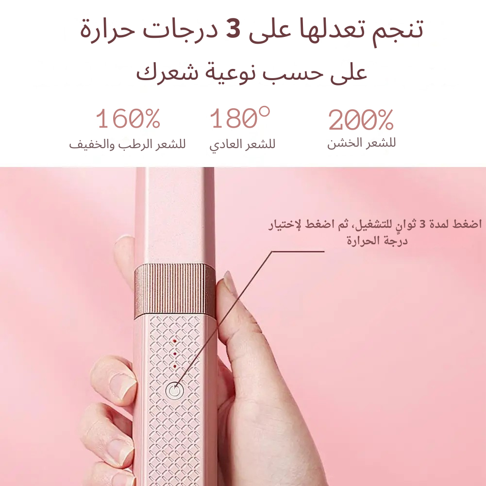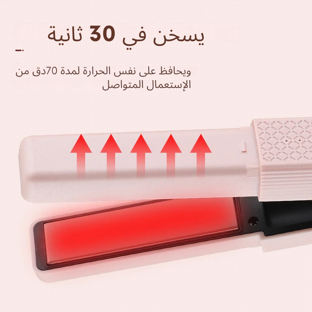 مكواة الشعر المحمولة . مثالية لتصفيف الشعر أثناء التنقل، حيث تتميز بحجمها الصغير وخفة وزنها، مما يجعلها سهلة الحمل في الحقيبة للاستخدام في السفر أو أثناء اليوم. تصميم مدمج ومحمول, تصل إلى درجة الحرارة المطلوبة في وقت قصير لتوفير الوقت. مصنوعة من السيراميك لتوزع الحرارة بالتساوي وتحمي الشعر من التلف. مناسبة لجميع أنواع الشعر، ويمكن استخدامها لتنعيم الشعر أو لعمل تموجات خفيفة حسب رغبتك